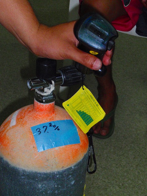 製造時の濃度表示もあるが使うダイバーが自分で酸素濃度をチェックするんですよ。