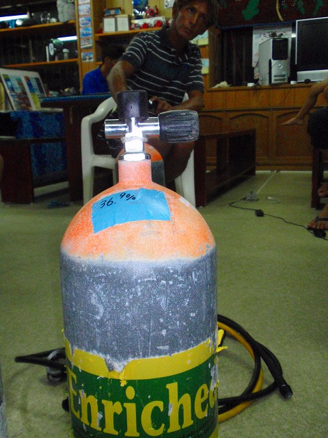 普通のエアーは酸素21パーセントですが、ナイトロックスは酸素濃度が濃いので