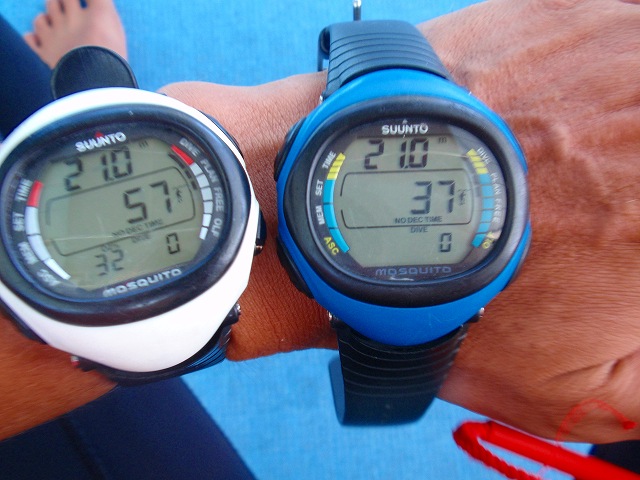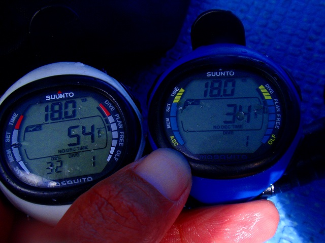 お客さんは ご自身のダイブコンピュータ(以後DC)をお持ちなので お客さんのDCとも 比べながら潜ってきました。
