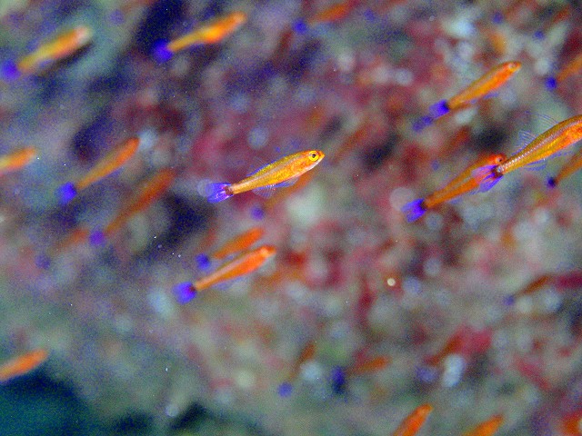 アオギハゼなんかは 岩のウラでひっそりしているのは良く見ますよね。ストロボあてて見ると実はこんなに綺麗なんですね~。