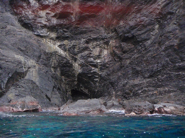 岩肌は、「黒島」というだけあってとっても黒いんですが、ところどころ色が違っている層があって、「あの時代は何かあったのかな?」と考えさせられます。