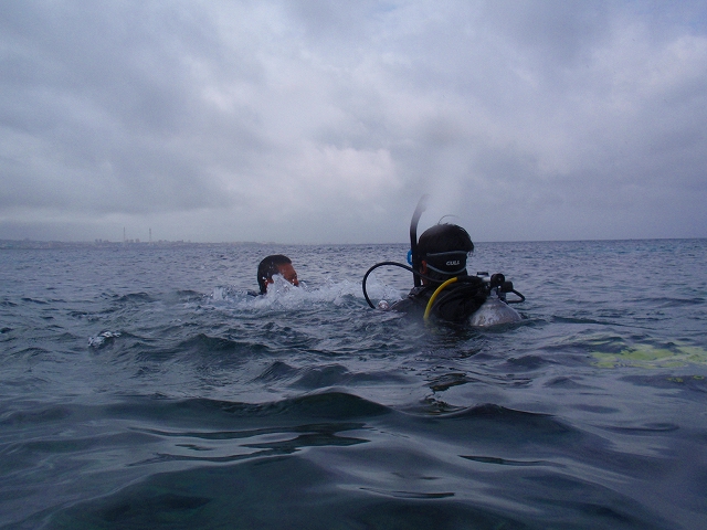 今朝は砂辺で早朝ダイビングに行ってきたという候補生のお一人が ちょっと興奮気味に集合場所に登場。