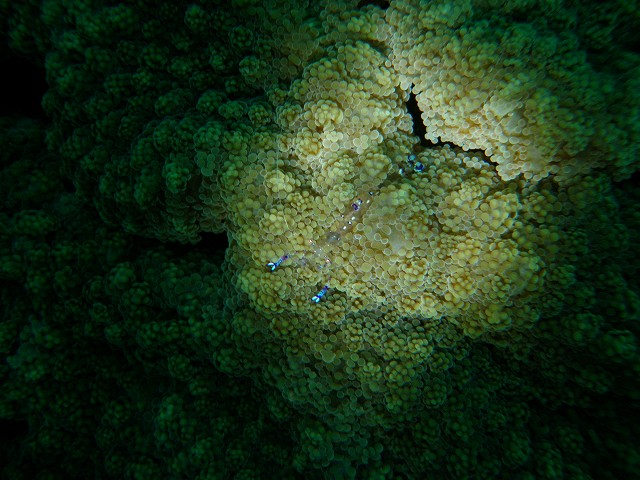 まったりと、グリーンマーカーではソフトコーラルの群生に群がる魚たちや、その合間に潜んでいるウミウシやバブルコーラルについているエビやオランウータンクラブを探したり。