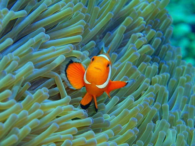 ファンダイブチームもスノーケリングチームもカクレクマノミを見に行ったり、カメを探しに行ったり。明るい太陽を背に水中を思う存分楽しんできました。