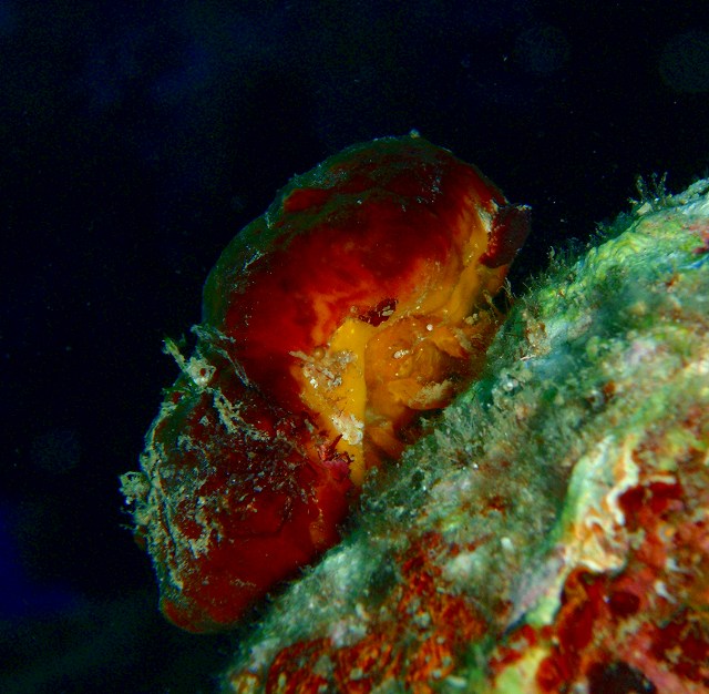 相変わらず神出鬼没のハナヒゲウツボ君♪初めて見たお客さんは、あまりの派手さにビックリしていました。さすがは、ウツボ界のスーパースターでしょうか。続いては、こちらも久々のカイカムリ君。カニなのですが、お客さんは終始?マークでした。初めて見るとビックリするような生き物が沢山いるのが海ですよね。ダイビングって面白い!!