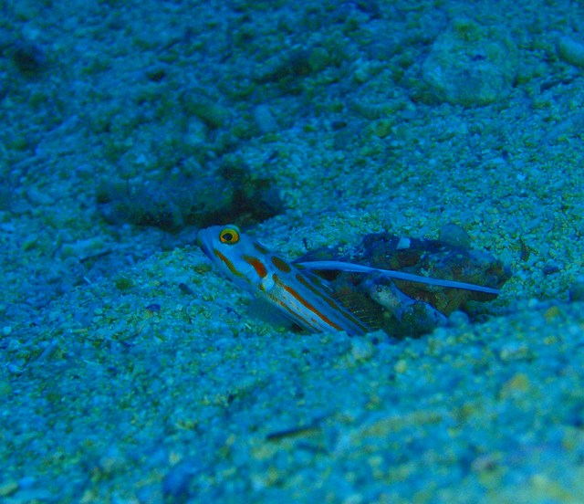 そうそう、ヤシャハゼを一生懸命お客さんに指をさして教えていたら・・・頭の上をアカウミガメの大きいのがスゥーっと通り過ぎていきました!!イナンビシで初めてアカウミガメを見ました♪あっという間に去ってしまったので、写真は有りません(涙)バラクーダも登場♪同じく、一瞬の出会いでした♪
