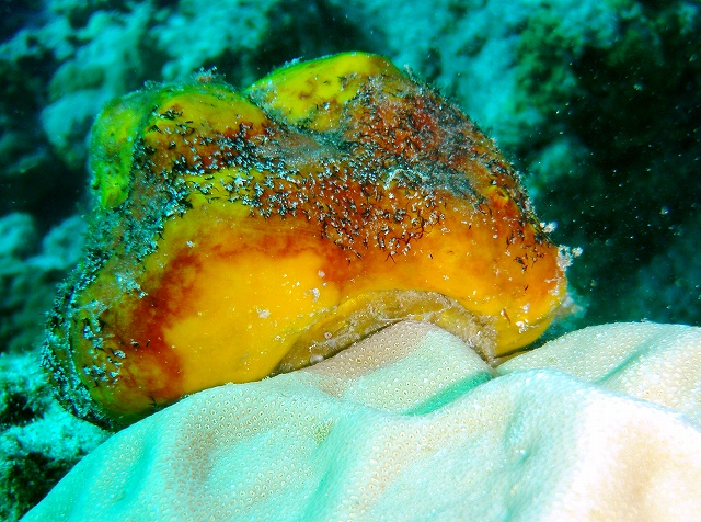 いつもの岩には、ハダカハオコゼくんの他にも、大きなウツボにアカシマシラヒゲエビがついてクリーニングしているところを見たり。