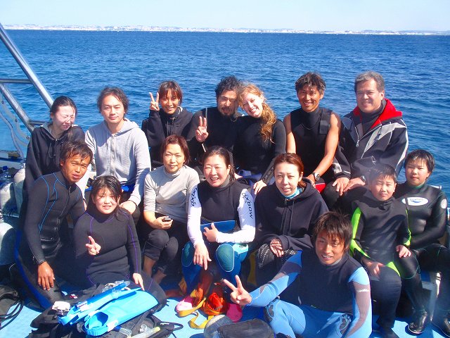 船の上は 体験ダイバー、OWD講習、ファンダイビング、ドライスーツSP、水中スクーターのチームとバリエーション豊富です。