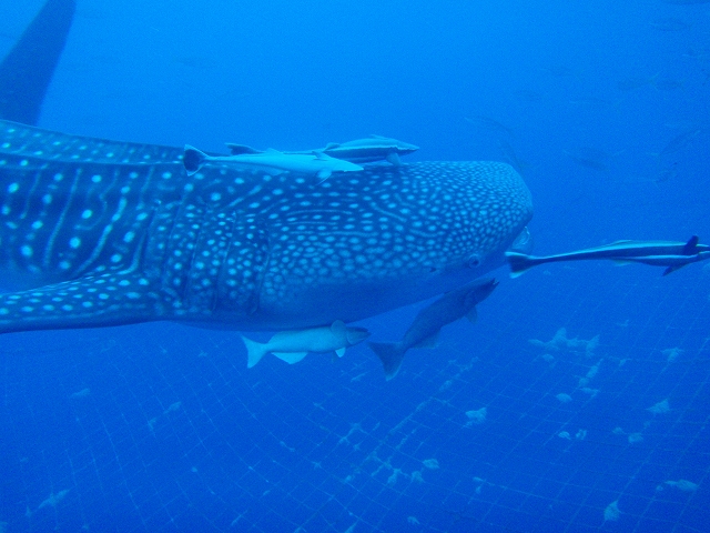 5匹ものコバンザメを従えて、ゆうゆうと泳いでいましたね。