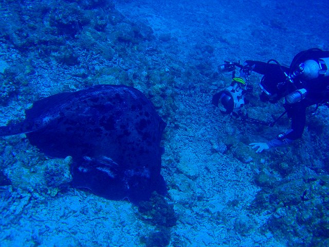 サンゴいっぱい、一本目のしょっぱなから大きなネムリブカとマダラエイカリフォルニアのテックダイバーとカナダからのダイバー