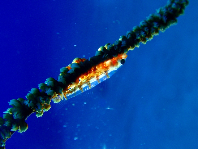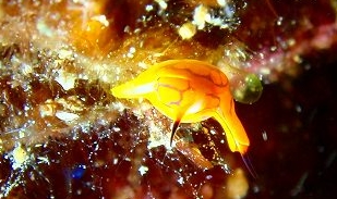 ムチカラマツエビを見たりしていたら、珍しく、オレンジウミコチョウの、ちーっちゃな個体を見つけました。スーーパーーマクロですねぇ。