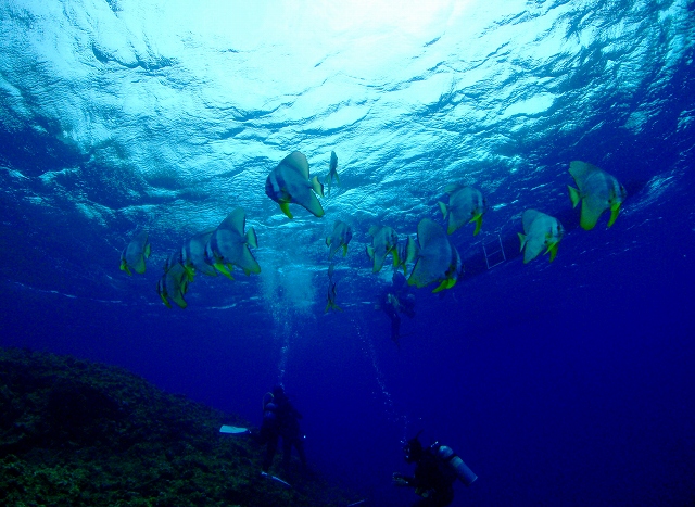 特にここのツバメウオの美しさは絶品です。沖縄本島にもツバメウオを見ることの出来るポイントがたくさん有ります。が、群れの形や魚体の美しさはカメラを持っていたら撮らずには居られないほどです。