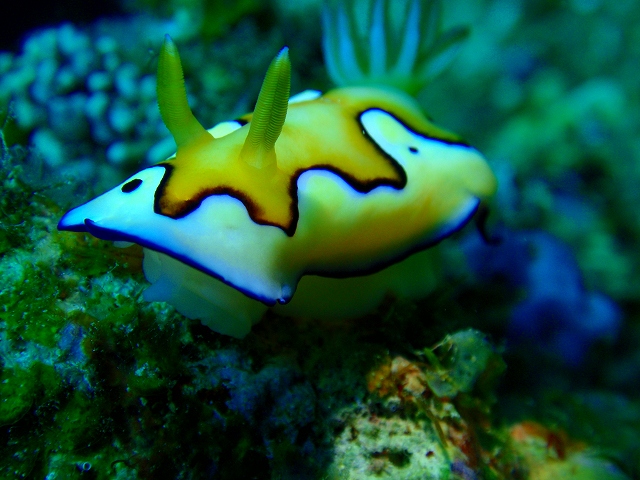 1本目では地形を堪能しながら移動して、巨大ナポレオン遭遇、写真は撮れず。根のトップではウミウシ。