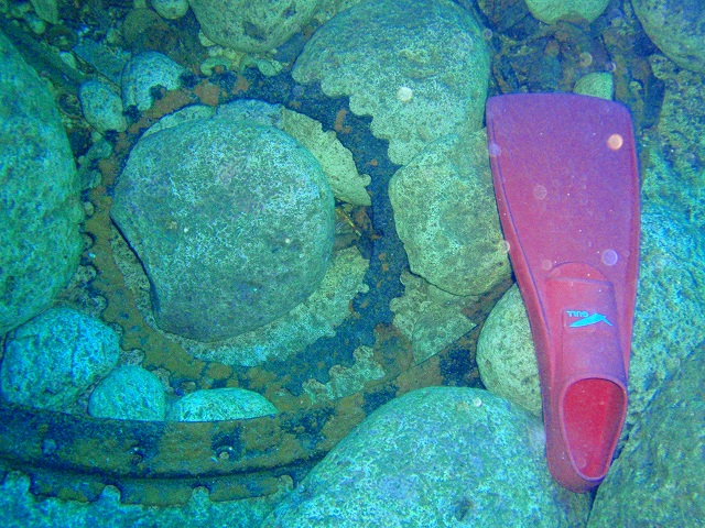 最近の物なのか?戦時中の物なのか?車とか戦車の部品?それとも船? 近くにはエンジンの部品も落ちていて それがまた巨大。