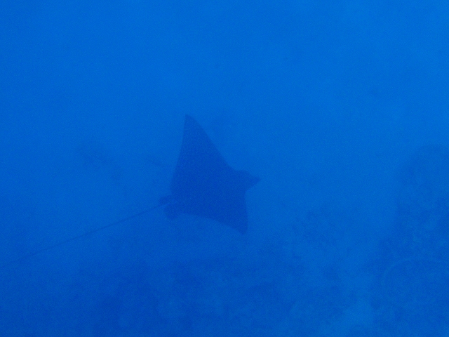 3本目のテーマは「サンゴと砂地で癒しのドリフト」 ドリフト=アグレッシブばかりでは無いという事で の~んびり潜ってきました。終盤ちょっと気になってた北側も見てからEXITに向おう~と移動をしていったら・・・マダラトビエイ現る!! ちょっと遠かったけどバッチリお客さんも見れました。