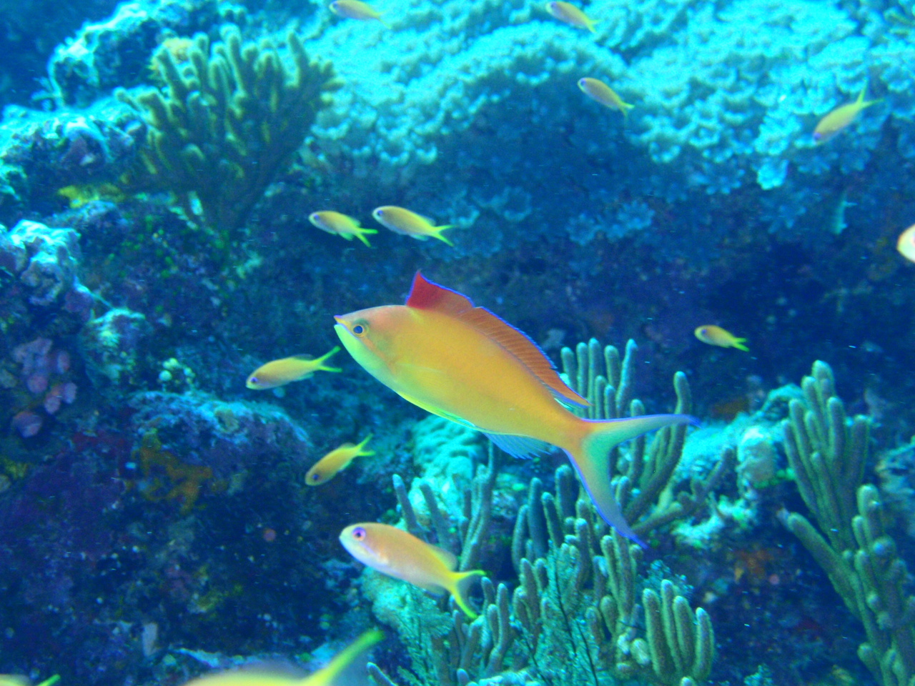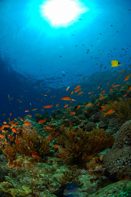 魚影のポイントグルクノ崎では、すごい数のカスミチョウチョウウオ、キンギョハナダイ、アカネハナゴイ、ハナゴイ、