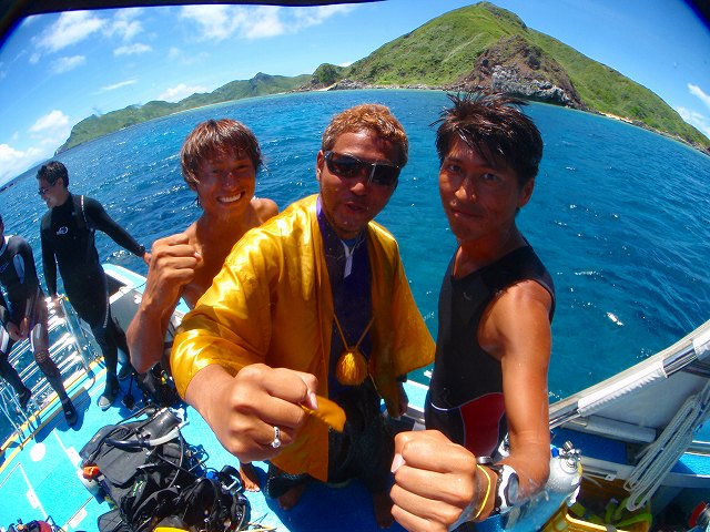 ビーフラップ号は昨日の取材陣&経験300本のダイブマスターと共に渡名喜島へ!!