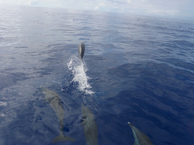 最後にまたまた、イルカの群れに遭遇してしまいました!行きと同じ群れのように見えました。 明日も同じ場所にいてくれるといいなー!皆さん遊びにきて下さいね!