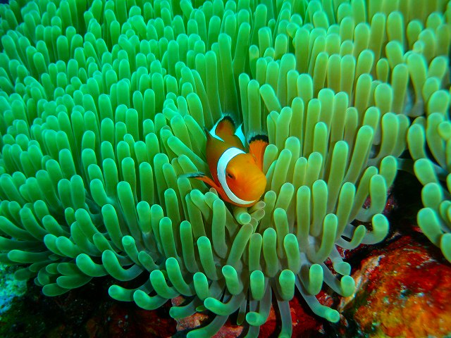 今日も元気に流れのある中、ピグミーシーホースが頑張ってイソバナについていました!気持ちのいい潮が入ってきていて魚もたくさん群れてましたよ!ウミガメさんも小さいサイズの子がいてご飯中でありましたが大きくなれよとやさしく見守ってしまいました。