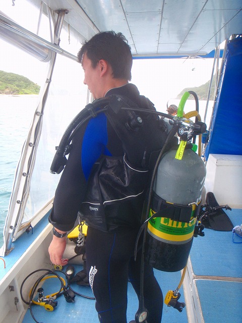 ここで、体験チームもエントリーです。一人は、ライセンス持ちなので、余裕です。バディが少し、緊張していました。でも、最後のログ付けの時には、カードをとった後のことで盛り上がっていましたよ♪次回、会えた時は、ダイバーですか!?