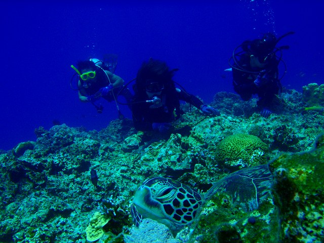 1本目で慣れたのか、2本目には、全員がカメ探しができたようです。しかも、初めてのダイビング、初めての慶良間でカメに会えたようですよ!!次回は、皆でFUNダイビングできるようになっちゃいましょう!!