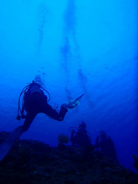 FUNチームは、なんだか二人ともスキルに関して遠慮ぎみでした。少し心配しながら潜ったのですが、はじめからヘッドファースト潜降していたり、ほぼ自由潜降だったりととっても上手でした!!のんびりサンゴを楽しんで、ウォーミングUP終了。
