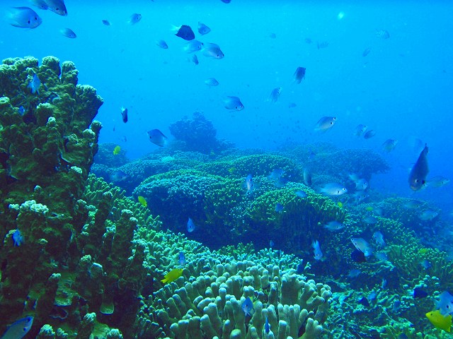 ダイナミックなドロップオフには、可愛いウミウシがいてくれました♪浅瀬のサンゴは1本目にも負けないくらいの綺麗さとスズメダイの魚群!!お客さんがウミウシ大好きだったので、見れて良かったですね~♪