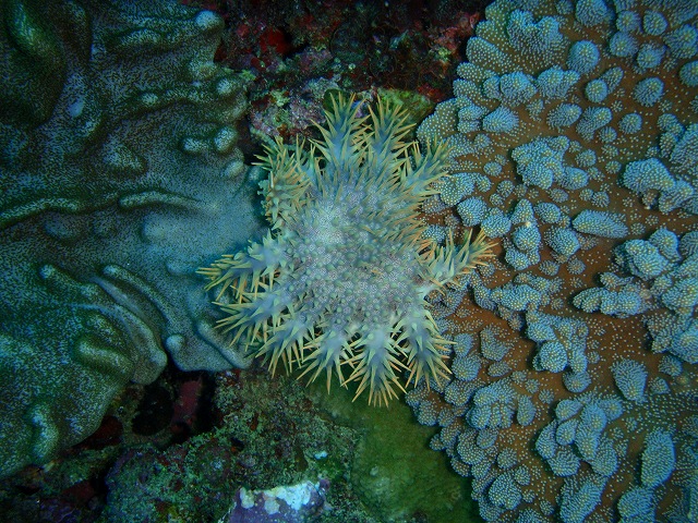 オニヒトデの方は厄介な事に夜行性で昼間はサンゴの裏や岩陰に隠れているためなかなか見つけにくいのです。