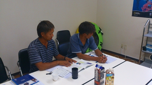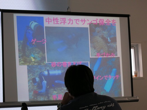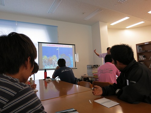沖縄一筋で10年以上ガイド業に精通している方々の3名を主体にガイドの際の小ネタや安全管理についてを午前は座学、午後からは海洋ダイブでのワークショップ形式で行いました。