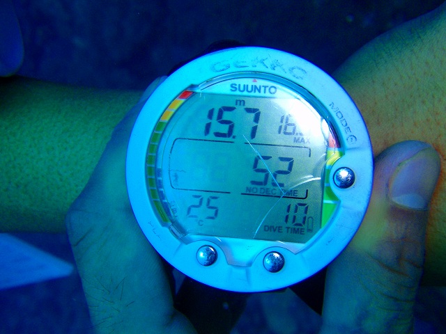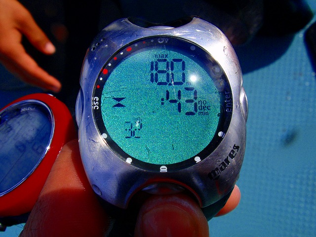 お客さんは ご自身のダイブコンピュータ(以後DC)をお持ちなので お客さんのDCとも 比べながら潜ってきました。